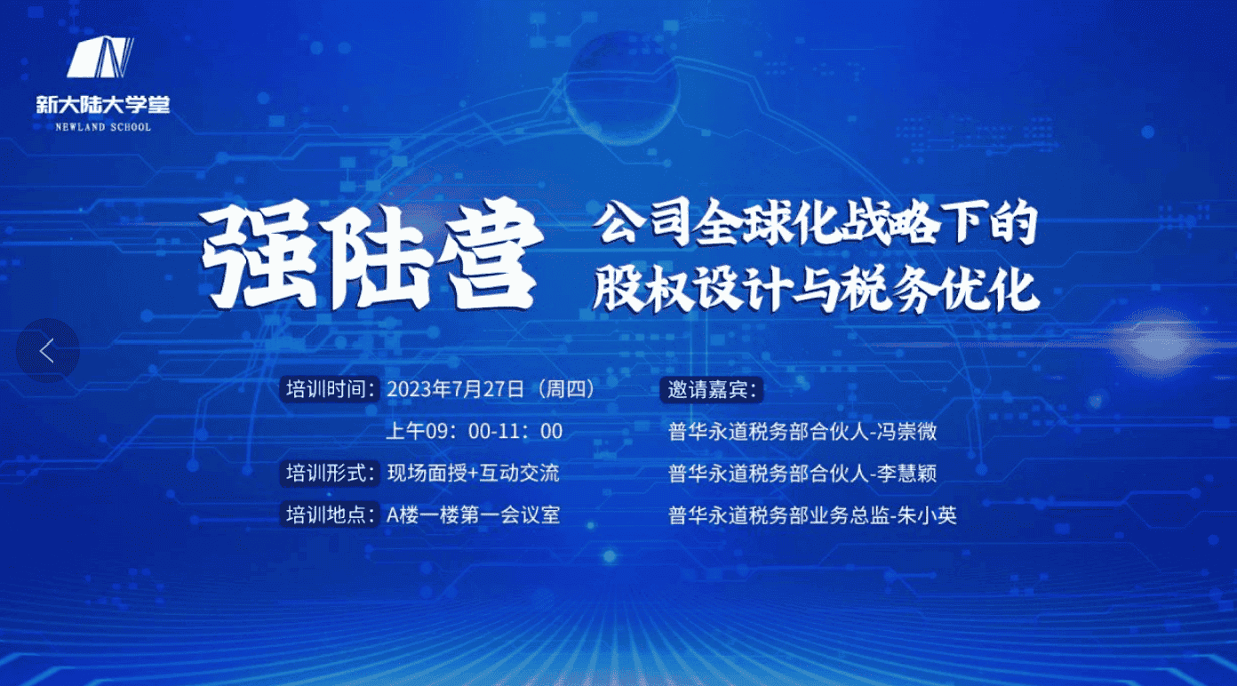 新大陸強陸營 | “公司全球化戰略下的股權設計與稅務優化”分享培訓會舉行