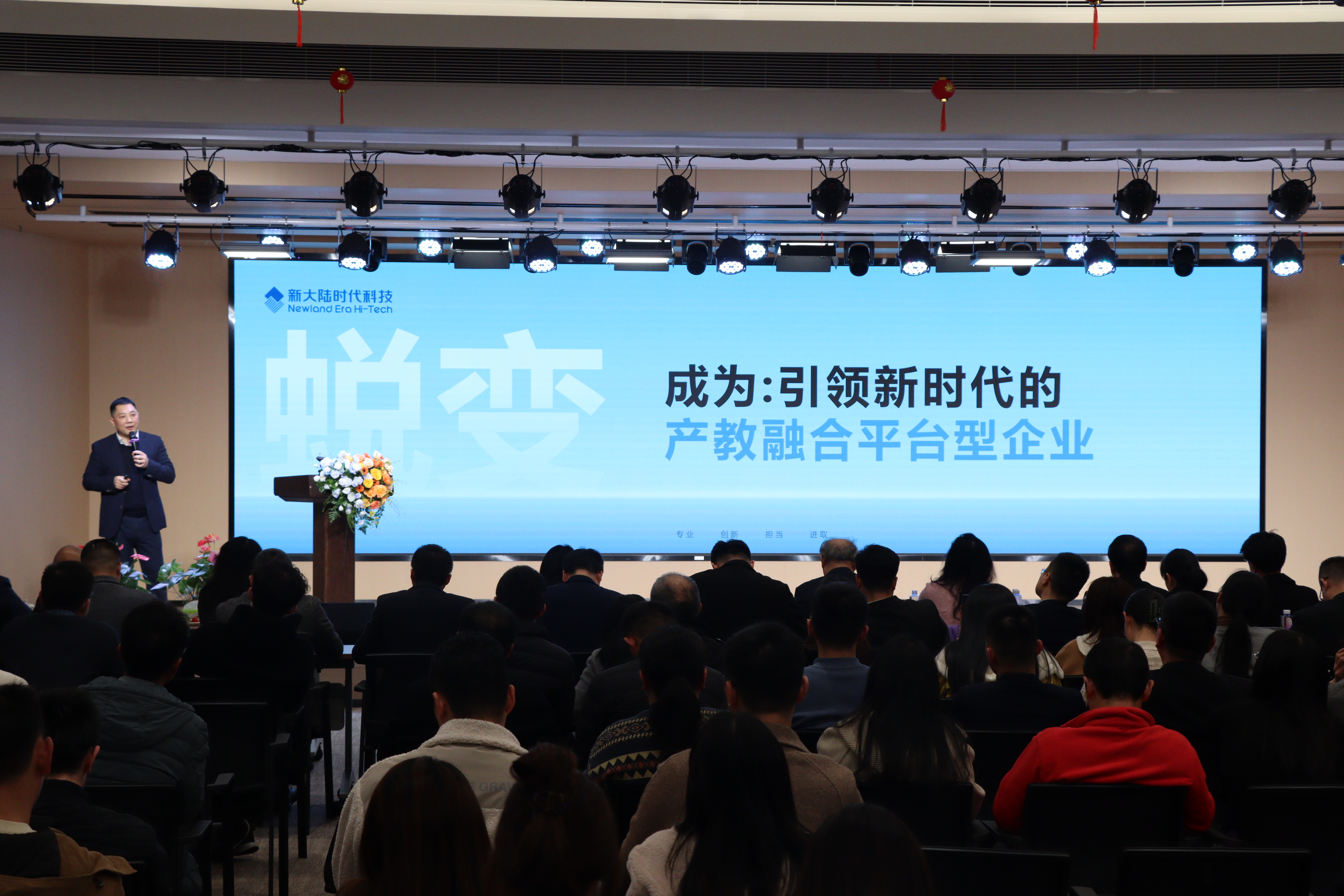 1月25日,新大陸時代科技2024年度總結(jié)暨2025年度計劃會在福州圓滿舉行。新大陸科技集團(tuán)董事長胡鋼、總裁王晶、董事副總裁林學(xué)杰以及新大陸數(shù)字技術(shù)股份有限公司董事會秘書徐芳寧等親臨現(xiàn)場。大會以“重構(gòu) 蛻變 再出發(fā)”為主題,新大陸時代科技全體員工通過線上線下聯(lián)動之式,齊聚一堂,共襄盛舉,開啟公司發(fā)展新篇。