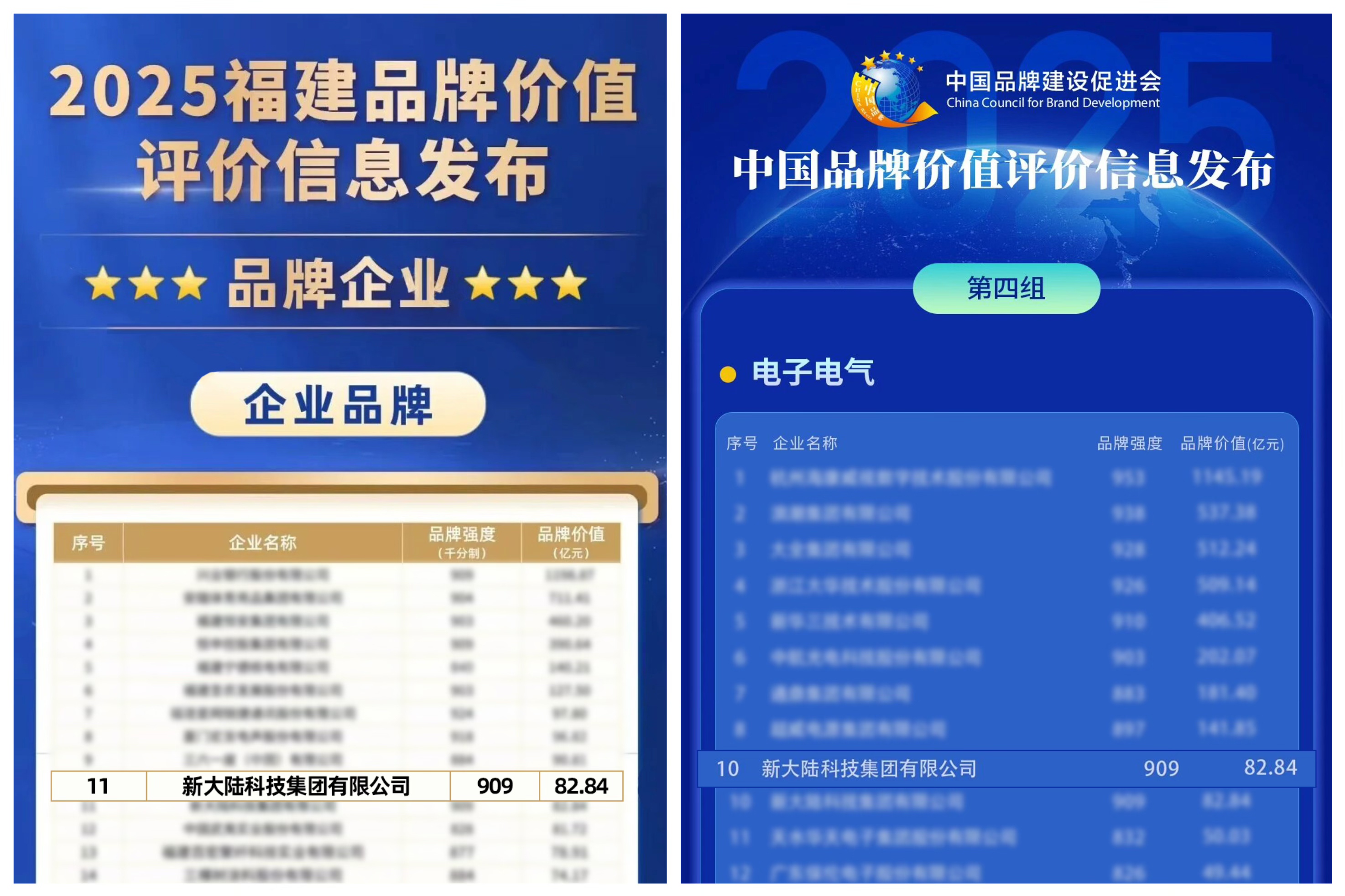 近日,2025“中國品牌價值評價信息”和“福建品牌價值評價信息”發(fā)布。新大陸再度上榜,位列中國電子電氣領(lǐng)域第十,福建品牌百強、企業(yè)品牌類第十一。